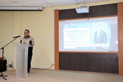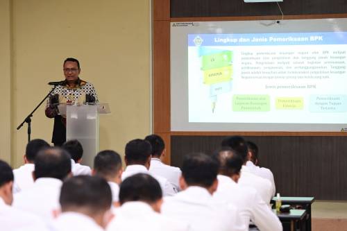JAKARTA, Humas BPK – Anggota I Badan Pemeriksa Keuangan (BPK)/Pimpinan Pemeriksaan Keuangan Negara I Nyoman Adhi Suryadnyana memberikan ceramah umum di Sekolah Staf dan Pimpinan Tinggi Lembaga Pendidikan dan Pelatihan (Lemdiklat) Kepolisian Republik Indonesia (Polri), di gedung Sekolah Tinggi Ilmu Kepolisian, Jakarta, Selasa (2/3).