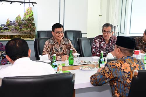 JAKARTA, Humas BPK – Anggota III Badan Pemeriksa Keuangan (BPK) RI Akhsanul Khaq, bersama Auditor Utama Keuangan Negara III Edward Ganda Hasiholan Simanjuntak, menerima kunjungan Menteri Desa, Pembangunan Daerah Tertinggal (PDT) Yandri Susanto, serta Wakil Menteri Ahmad Riza Patria dan jajaran pada Selasa (17/12). Pertemuan yang berlangsung di kantor pusat BPK RI ini membahas program kerja mendatang dan penyelesaian permasalahan tindak lanjut rekomendasi hasil pemeriksaan (TLRHP) di lingkungan Kementerian Desa PDT (Kemendes PDT).