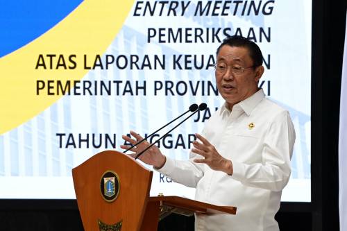 Hal tersebut disampaikan Anggota V Badan Pemeriksa Keuangan (BPK)/Pimpinan Pemeriksaan Keuangan Negara V Ahmadi Noor Supit kepada Penjabat (Pj) Gubernur Daerah Khusus Ibukota Jakarta (DKI Jakarta) Heru Budi Hartono saat entry meeting pemeriksaan atas LK Pemerintah Provinsi (Pemprov) DKI Jakarta tahun anggaran 2023, di Balai Agung DKI Jakarta, Rabu (7/2).