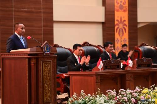 MANADO, Humas BPK – Wakil Ketua Badan Pemeriksa Keuangan (BPK) RI, Budi Prijono menyampaikan Laporan Hasil Pemeriksaan (LHP) atas Laporan Keuangan Pemerintah Provinsi Sulawesi Utara Tahun 2024 dalam Rapat Paripurna Dewan Perwakilan Rakyat Daerah (DPRD) Provinsi Sulawesi Utara, Senin (2/6), di Manado. LHP diterima langsung oleh Ketua DPRD Provinsi Sulawesi Utara, Fransiscus Andi Silangen dan Gubernur Sulawesi Utara, Mayjen TNI (Purn.) Yulius Selvanus.