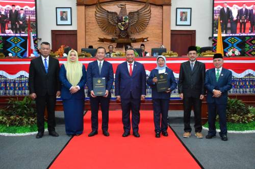 MATARAM, Humas BPK – Anggota I Badan Pemeriksa Keuangan Republik Indonesia (BPK), Nyoman Adhi Suryadnyana, menyampaikan Laporan Hasil Pemeriksaan (LHP) atas Laporan Keuangan Pemerintah Daerah (LKPD) Provinsi Nusa Tenggara Barat (NTB) Tahun 2024 dalam Rapat Paripurna Dewan Perwakilan Rakyat Daerah (DPRD) Provinsi NTB, Kamis (19/6), di Mataram. LHP tersebut disampaikan langsung kepada Ketua DPRD Provinsi NTB, Baiq Isvie Rupaeda dan Gubernur NTB, Lalu Muhammad Iqbal.