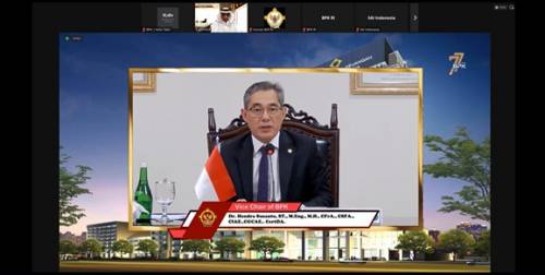 JAKARTA, Humas BPK – Wakil Ketua Badan Pemeriksa Keuangan (BPK) Hendra Susanto memimpin delegasi BPK dalam pertemuan bilateral dengan Executive Vice President for Performance Audit of the General Court of Audit of the Kingdom of Saudi Arabia Abdullah Al Haiqi yang diselenggarakan secara daring, pada Rabu (15/11).