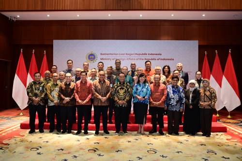 JAKARTA, Humas BPK – Badan Pemeriksa Keuangan (BPK) memberikan pembekalan kepada para duta besar dan konsul jenderal terpilih mengenai tata kelola keuangan negara di perwakilan RI di luar negeri di kantor Kementerian Luar Negeri, Jakarta, Selasa (11/2). Kegiatan ini bertujuan untuk meningkatkan pemahaman terkait isu-isu pengelolaan keuangan negara serta langkah-langkah preventif guna mencegah permasalahan berulang di kemudian hari.