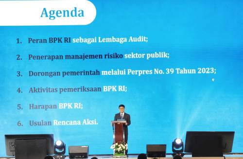 “BPK berharap agar Pemerintah dapat mengimplementasikan manajemen risiko pembangunan nasional secara konsisten di setiap entitas baik pemerintah pusat, pemerintah daerah, maupun pemerintah desa dengan didukung oleh komitmen yang tinggi dari setiap pimpinan entitas,” tegas Anggota III BPK.