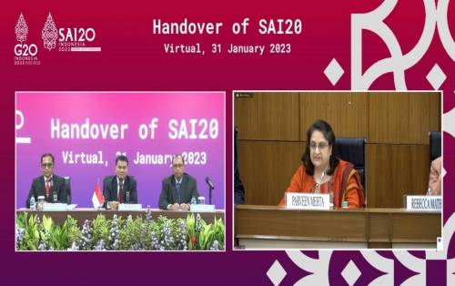 JAKARTA, Humas BPK – Badan Pemeriksa Keuangan (BPK) secara resmi telah melakukan serah terima Presidensi Supreme Audit Institution 20 (SAI20) kepada Office of Comptroller and Auditor General (CAG) of India, pada Selasa (31/1) secara virtual.