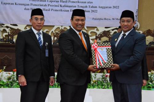 Hal tersebut diungkapkan Anggota I BPK/Pimpinan Pemeriksaan Keuangan Negara I, Nyoman Adhi Suryadnyana, saat menyerahkan Laporan Hasil Pemeriksaan (LHP) atas Laporan Keuangan Pemerintah Daerah (LKPD) Provinsi Kalteng tahun anggaran 2022 kepada Ketua Dewan Perwakilan Rakyat Daerah (DPRD) Provinsi Kalteng, Wiyatno dan Wakil Gubernur Kalteng, Edy Pratowo, di kantor DPRD Kalteng, Selasa, (30/5).