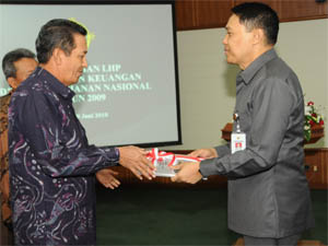 foto1Rabu, 9 Juni 2010, BPK RI menyerahkan dua laporan hasil pemeriksaan (LHP) laporan keuangan kementerian/lembaga. Penyerahan dilakukan oleh Anggota I BPK RI, Moermahadi Soerja Djanegara, di kantor pusat BPK RI. Pada acara pertama, Anggota I BPK menyerahkan LHP Laporan Keuangan Dewan Ketahanan Nasional (Wantannas) Tahun 2009 kepada Deputi Pengembangan Wantannas, Irjen Pol Firman Gani. Penyerahan disaksikan oleh para pejabat di lingkungan Auditorat Keuangan Negara (AKN) I BPK RI, serta para pejabat di lingkungan Wantannas. Anggota I BPK mengatakan, dalam tiga tahun terakhir, BPK telah memberikan opini Wajar Tanpa Pengecualian (WTP) untuk Laporan Keuangan Wantannas. Tahun ini, BPK kembali memberikan opini WTP untuk Laporan Keuangan Wantannas Tahun 2009. Dengan opini tersebut, BPK menilai Laporan Keuangan Wantannas Tahun 2009 telah menyajikan secara wajar, dalam semua hal yang material, posisi keuangan Wantannas pada 31 Desember 2009 dan realisasi anggaran untuk tahun yang berakhir pada tanggal tersebut, sesuai dengan Standar Akuntansi Pemerintahan.