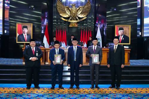 JAKARTA, Humas BPK – Badan Pemeriksa Keuangan (BPK) menyoroti beberapa temuan penting dalam laporan hasil pemeriksaan (LHP) atas laporan keuangan (LK) Pemerintah Provinsi DKI Jakarta tahun anggaran (TA) 2023. Hal ini disampaikan oleh Anggota V BPK/Pimpinan Pemeriksaan Keuangan Negara V Ahmadi Noor Supit saat menyampaikan LHP atas LK Pemerintah Provinsi DKI Jakarta TA 2023 kepada Wakil Ketua Dewan Perwakilan Rakyat Daerah (DPRD) DKI Jakarta Khoirudin dan Pj. Gubernur DKI Jakarta Heru Budi Hartono dalam sidang paripurna DPRD DKI Jakarta di Jakarta, Kamis (25/7).