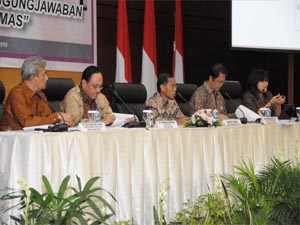 Selasa (22/6) lalu, Ditama Revbang Diklat dan Biro Humas dan Luar Negeri BPK menyelenggarakan diskusi panel dengan tema “Pengelolaan dan Pertanggungjawaban Program Jamkesmas” di Auditorium BPK RI. Acara diskusi yang dibuka oleh Anggota IV BPK RI, Ali Masykur Musa, ini diikuti oleh para Kepala Daerah, Kepala RSUD, Kepala Dinas Kesehatan, Wakil Asosiasi DPRD Kota dan Kabupaten, dan Wakil Kementerian Dalam Negeri. Sebelum diskusi dimulai, Sekretaris Jenderal BPK RI, Dharma Bhakti menyampaikan laporan mengenai penyelenggaraan acara tersebut. Tema yang diambil dalam acara diskusi kali ini merupakan salah satu hasil pemeriksaan BPK yang dilaksanakan pada Semester II Tahun 2009. Program Jamkesmas merupakan upaya pemerintah untuk memenuhi hak pelayanan kesehatan bagi masyarakat miskin sebagaimana diamanatkan UUD 1945 pasal 28 H dan UU No. 23 tentang Kesehatan. Keberadaan Program Jamkesmas diharapkan mampu meningkatkan akses dan mutu pelayanan kesehatan masyarakat miskin dan tidak mampu agar tecapai derajat kesehatan masyarakat yang optimal secara efektif dan efisien.