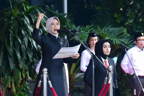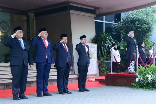 JAKARTA, Humas BPK – Badan Pemeriksa Keuangan (BPK) melaksanakan upacara bendera dalam rangka memperingati Hari Ulang Tahun (HUT) ke-78 kemerdekaan Republik Indonesia (RI), di halaman kantor pusat BPK, Kamis (17/8). Ketua BPK, Isma Yatun, bertindak sebagai inspektur upacara dalam kegiatan yang digelar secara hybrid tersebut.