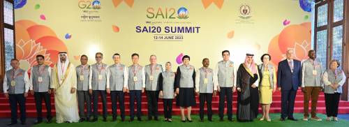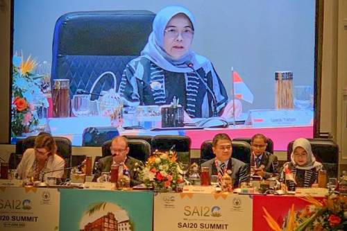 Ketua BPK, Isma Yatun, menghadiri SAI20 Summit yang merupakan puncak rangkaian kegiatan SAI20 tahun 2023 setelah sebelumnya telah dilaksanakan rangkaian pertemuan technical meeting dan senior officers meeting. Dalam penyelenggaraan tahun ini, SAI India mengambil tema terkait Blue Economy dan Responsible Artificial Intelligence (AI).