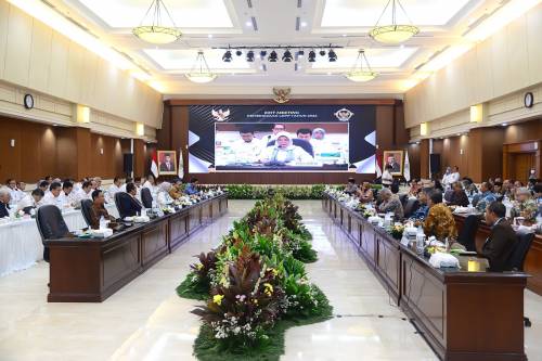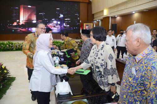 Kegiatan exit meeting pemeriksaan atas LKPP tahun 2022 dihadiri oleh para Pimpinan BPK, Menteri Keuangan selaku Wakil Pemerintah, Sri Mulyani, serta menteri dan pimpinan lembaga yang hadir baik secara fisik maupun daring.