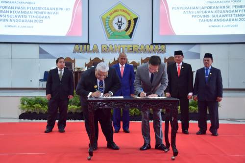 LHP atas Laporan Keuangan Pemerintah Daerah (LKPD) Provinsi Sulawesi Tenggara tahun 2022, diserahkan oleh Anggota VI BPK kepada Ketua DPRD Provinsi Sulawesi Tenggara, Abdurrahman Shaleh, dan Gubernur Sulawesi Tenggara, Ali Mazi.