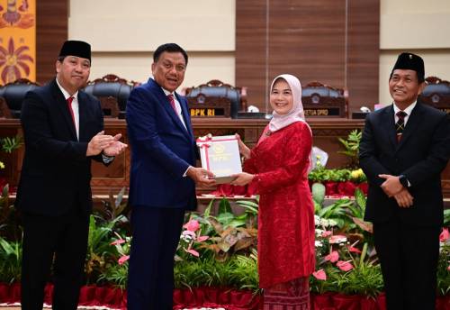 Penyerahan Laporan Hasil Pemeriksaan (LHP) dilakukan oleh Ketua BPK RI Isma Yatun kepada Ketua Dewan Perwakilan Rakyat Daerah (DPRD) Provinsi Sulut Fransiscus Andi Silangen dan Gubernur Sulut Olly Dondokambey, di Gedung DPRD Provinsi Sulut, Manado, Selasa (30/4).