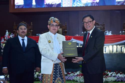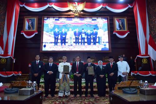 LHP ini diserahkan langsung oleh Anggota V BPK RI/Pimpinan Pemeriksaan Keuangan Negara V Ahmadi Noor Supit kepada Penjabat Gubernur Jatim Adhy Karyono dan Ketua DPRD Provinsi Jatim Kusnadi, dalam sidang paripurna DPRD Provinsi Jatim, di Surabaya, (2/5).