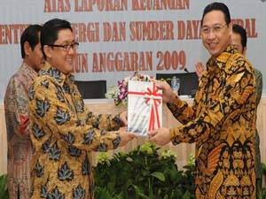 Jumat, 16 Juli 2010, Anggota IV Badan Pemeriksa Keuangan RI, Ali Masykur Musa menyerahkan Laporan Hasil Pemeriksaan (LHP) Laporan Keuangan Kementerian Energi dan Sumber Daya Mineral (ESDM) Tahun 2009 kepada Menteri ESDM, Darwin Zahedy Saleh di Kantor Kementerian ESDM, Jakarta. Penyerahan LHP ini disaksikan oleh para pejabat di lingkungan Auditorat Keuangan Negara (AKN) IV BPK RI, serta para pejabat di lingkungan Kementerian ESDM. BPK memberikan opini Wajar Dengan Pengecualian (WDP) untuk Laporan Keuangan Kementerian ESDM Tahun 2009. Dengan opini WDP, BPK menilai Laporan Keuangan Kementerian ESDM Tahun 2009 telah menyajikan secara wajar, dalam semua hal yang material, posisi keuangan Kementerian Energi dan Sumber Daya Mineral tanggal 31 Desember 2009 dan realisasi anggaran untuk tahun yang berakhir pada tanggal tersebut, sesuai dengan Standar Akuntansi Pemerintahan, kecuali Piutang Bukan Pajak yang berupa hak tagih iuran tetap dari 7.786 Kuasa Pertambangan, hak tagih royalti pemerintah dari 2.057 Kuasa Pertambangan Eksploitasi, dan penetapan nilai piutang badan usaha pada BPH migas sebesar Rp19,39 miliar. Serta masih ada pencatatan aset tetap yang merupakan Penyertaan Modal Negara pada PT Perusahaan Gas Negara yang seharusnya dihapuskan tetapi masih tercatat dalam Neraca Ditjen Migas minimal sebesar Rp64,85 miliar.