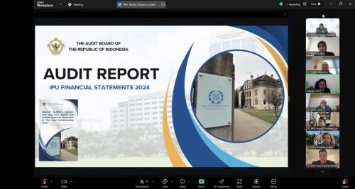 JAKARTA, Humas BPK – Badan Pemeriksa Keuangan (BPK) melaksanakan pertemuan dengan Those Charged with Governance atau Pihak yang Bertanggung Jawab atas Tata Kelola Inter-Parliamentary Union secara daring pada Senin (24/3). Pertemuan dilakukan sebagai rangkaian penyerahan Laporan Hasil Pemeriksaan (LHP) atas Laporan Keuangan (LK) IPU tahun 2024 yang sebelumnya telah diserahkan pada 14 Maret 2025 dan tindak lanjut dari pertemuan Ketua BPK dengan Sekretaris Jenderal IPU pada bulan November 2024 sekaligus bentuk kepatuhan BPK terhadap standar pemeriksaan internasional tentang komunikasi dengan TCWG.
