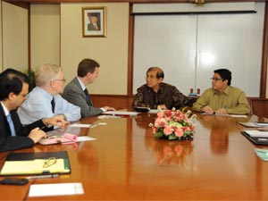 Ketua BPK, Hadi Poernomo didampingi oleh Anggota IV BPK, Ali Masykur Musa menerima kunjungan Country Director World Bank Office yang baru, Stefan Koeberle pada 23 September 2010 di Gedung Umar Wirahadikusumah BPK RI, Jakarta. Pertemuan dilaksanakan dalam rangka perkenalan pejabat baru Bank Dunia di Jakarta dengan Pimpinan BPK serta untuk mendapatkan gambaran bidang-bidang apa saja yang dapat dibantu oleh Bank Dunia sesuai dengan kebutuhan BPK.