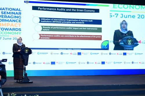 “SAI dapat melakukan audit kinerja dengan menggunakan prinsip dan standar International Organization of Supreme Audit Institutions (atau INTOSAI) untuk memastikan efektivitas ekonomi hijau dan SDGs,” ujar Ketua BPK, Isma Yatun, dalam pembukaan seminar internasional yang akan berlangsung selama tiga hari (5-7 Juni) tersebut.