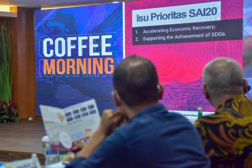 JAKARTA, Humas BPK – Badan Pemeriksa Keuangan (BPK) mengundang sejumlah pimpinan redaksi media massa nasional untuk menghadiri coffee morning di Kantor Pusat BPK, Jakarta, Selasa (9/8). Kegiatan ini diselenggarakan dalam rangka menyosialisasikan peran BPK melalui Supreme Audit Institutions 20 (SAI20) dalam Presidensi G20.