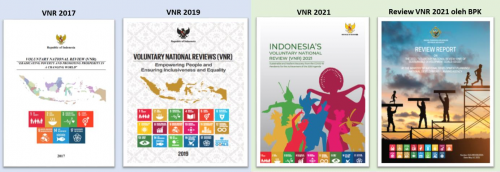 Di tingkat global, Pemerintah Indonesia telah menunjukkan komitmennya untuk berkontribusi dalam pencapaian SDGs, dengan menyampaikan VNR setiap 2 tahun di HLPF. Sampai saat ini, Pemerintah Indonesia telah tiga kali mempresentasikan VNR, yaitu pada tahun 2017, 2019, dan 2021, dan direncanakan untuk kembali mempresentasikan VNR di tahun 2023.